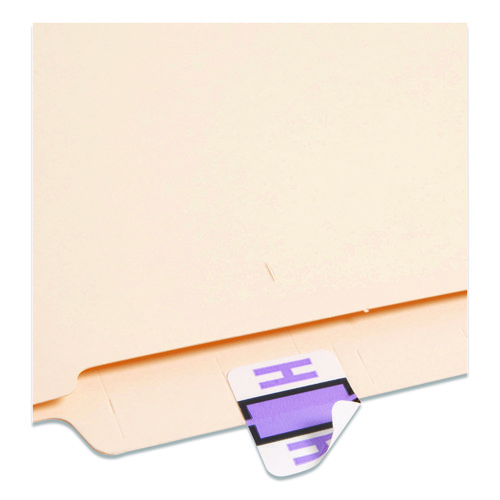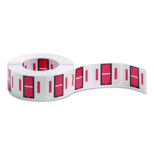 Keep files organized at a glance with these alphabetic labels that feature a wraparound solid color bar and a colored character printed on a white background. Colors are compatible with end tab systems using the bar-style format. Convenient dispensing box for easy peel off and application. Includes 500 labels per roll. Compatible with Tab® Products 1283 series alphabetical labels.