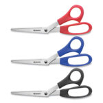 All Purpose Value Stainless Steel Scissors, 8″ Long, 3″ Cut Length, Offset Assorted Color Handles, 3-pack