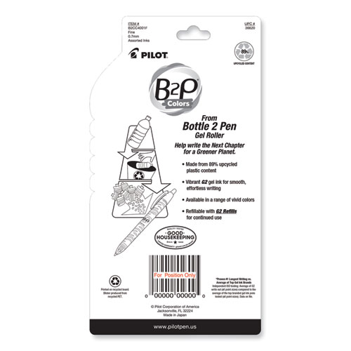 B2p Bottle-2-pen Recycled Gel Pen, Retractable, Fine 0.7 Mm, Assorted Ink And Barrel Colors, 4-pack