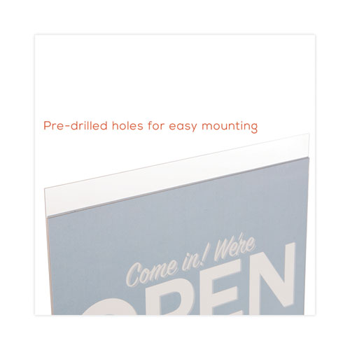 Take advantage of empty wall space and save valuable counter space with these convenient, easy-to-use wall mount sign holders. The transparent design offers full visibility to your message. Perfect for any retail or commercial setting, these sign holders attract attention and are an effective way to communicate, protect and display information in a way that’s easy to use. Whether you’re advertising daily specials, promoting and event or delivering a message, these sign holders will grab your customer’s attention. Top-loading, plastic sign holders have pre-drilled holes to make wall mounting easy. Quickly change out inserts without removing them from the wall.