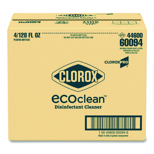 Clorox Pro Ecoclean Disinfecting Cleaner, Unscented, 128 Oz Refill Bottle, 4-carton