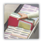 Use color to code and organize, so you can quickly identify the proper pocket. Rollover gussets are reinforced with an ultra-durable, tear-resistant material to provide extra strength at the most critical wear points. Larger than average, straight-cut tabs and manila liners enable high-contrast, detailed labeling, ensuring easy identification of your stored materials. Fold-down front panel provides hassle-free access to the pocket’s contents. Fully enclosed bottom, front, back and sides help ensure that your documents remain securely contained.