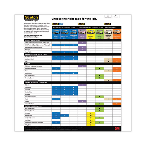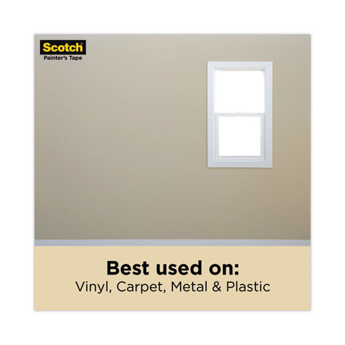 Scotch® Contractor Grade Masking Tape is a general purpose masking tape designed for use on non-damageable surfaces. Use on vinyl, carpet, metal, and plastic for the protection you need to get the job done. This masking tape holds to surfaces for up to three days and then removes easily without leaving any sticky residue behind. For great paint results make sure the surface is clean, dry and dust-free so that the tape sticks properly. Next, apply the tape onto the surface while pressing down firmly as you go. And lastly, let the tape set for about 30 to 60 minutes before painting. Wait until the paint is dry to the touch before removing the tape. Lift it up by slowly pulling it back on itself, then removing at a 45-degree angle.