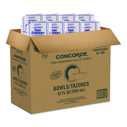 Concorde Non-laminated Foam Bowl, 12 Oz, White, 125-pack, 8 Packs-carton