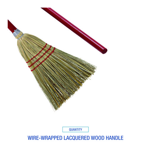 Affordably priced, blended fiber bristle brooms provide professional-grade performance at a fraction of the cost. Wrapped in a Nylon cord binding that helps to minimize the potential for straw loss. Wire-wrapped around lacquered wood handles for added strength and durability. Natural colored corn fibers are ideal for use on concrete, tile, brick, and other hard floor surfaces. Can be used indoors or outdoors.