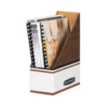 Bankers Box premium corrugated construction with glued side panels withstands heavy day-to-day usage. Organizes and stores a variety of letter size binders, projects, file folders, catalogs, magazines, newspapers and periodicals. Shipped flat, easy to assemble. Label area on all sides. Woodgrain design blends with any decor. Sturdy and durable. Made from corrugated cardboard. Look for other Bankers Box corrugated items to help you will all of your storage needs.