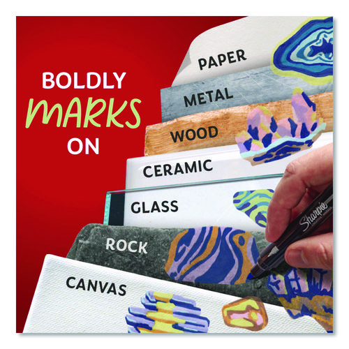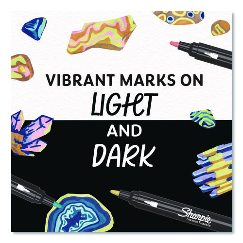 Bring your artistic vision to life with Sharpie Creative Markers! These acrylic markers feature stunning paint-like ink that glides across the page with the control of a marker. The water-based ink won’t bleed through paper, so your work stays clean. The bright color markers create vibrant marks on light and dark surfaces and boldly mark on paper, metal, wood, ceramic, glass, rock and canvas. The colors beautifully layer to add dimension to your work. What’s more, there’s no need to prime these brush tip markers-simply uncap and go!