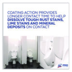 Clean, disinfect, and deodorize urinals and toilet bowls to give guests a clean bathroom experience. Meet staff and customer expectations around cleanliness. Optimize restroom cleaning time with a powerful formula that works on the toughest toilet stains in seconds. Remove hard water deposits with the thick 9.5% hydrochloric acid formula that adheres to stains for better cleaning and coats the bowl above and below the waterline. Kills 99.9% of viruses and bacteria when used as directed. Elevate restroom experiences throughout facilities for customers and staff with a powerful cleaning formula that helps leave surfaces shiny. Will not harm plumbing or septic systems.