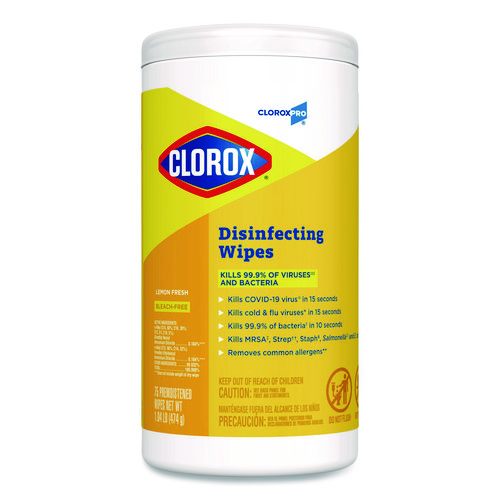 Clorox Disinfecting Wipes clean, disinfect and remove allergens leaving behind a pleasant scent. Disinfecting Wipes clean and disinfect with antibacterial power that kills 99.9% of viruses and bacteria that can live on surfaces, including COVID-19 Virus, staph, E. coli, MRSA, salmonella, strep and Kleb on hard, nonporous surfaces when used as directed. These all-purpose disposable wipes remove common allergens, germs and messes on surfaces like kitchen counters, bathroom surfaces and more. Disinfecting Wipes are safe to use on a variety of surfaces including non-food-contact surfaces in the home, office, daycares, schools, hotels, restaurants, and more. Use as directed. Allow product to air dry.