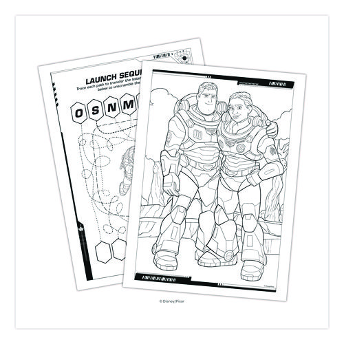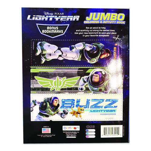 Join Buzz, Alisha, Sox and the crew on a coloring adventure with the DisneyĀ® PixarĀ® Lightyear Jumbo Coloring & Activity Book. Chock-full of coloring pages, games and puzzles along with a bonus punch-out, standup character lifted from the animated science-fiction, action-adventure film, this book provides plenty of fun activities to keep creative children engaged. Afterwards, the coloring-pages’ Tear and ShareĀ® design makes showcasing your little artist’s masterpieces a snap. Officially licensed product.