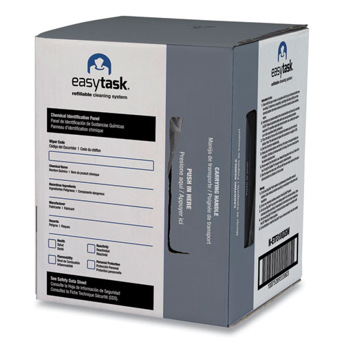 Easytask Refillable Cleaning System, create your own pre-sat wiper. Portable GrabBox contains quarterfold wipers in a resealable bag. Sanitizer/disinfectant compatible, holds half gallon of solution. Antimicrobial wiper for food service, food prep and other general purpose wiping applications. Antimicrobial treatment inhibits the growth of odor causing bacteria in the towel.
