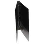 Economical view binder for light use. Non-glare transparent plastic overlays on front cover, back cover and spine for easy customization. Binder features back-mounted rings for added convenience. Two inside pockets provide extra storage for loose documents. Poly material is non-stick. Inserts, pockets and cover won’t lift print.
