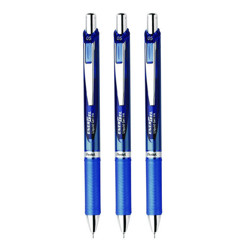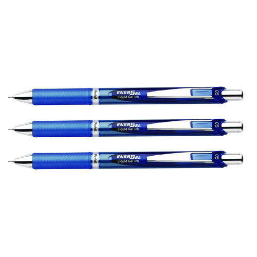 Energel Rtx Deluxe Gel Pen, Retractable, Fine 0.5 Mm, Blue Ink, Blue-silver Barrel, 3-pack