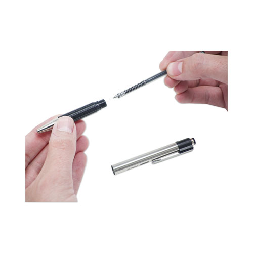F-301 Ballpoint Pen, Retractable, Fine 0.7 Mm, Black Ink, Stainless Steel-black Barrel, 2-pack