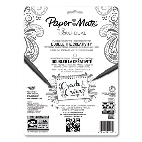 Flair Dual Tip Multi-tip Porous Point Pen, Stick, Medium 0.7 Mm Bullet, Assorted Ink And Barrel Colors, 16-pack