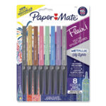Flair Metallic Porous Point Pen, Stick, Medium 0.7 Mm, Assorted Ink And Barrel Colors, 8-pack
