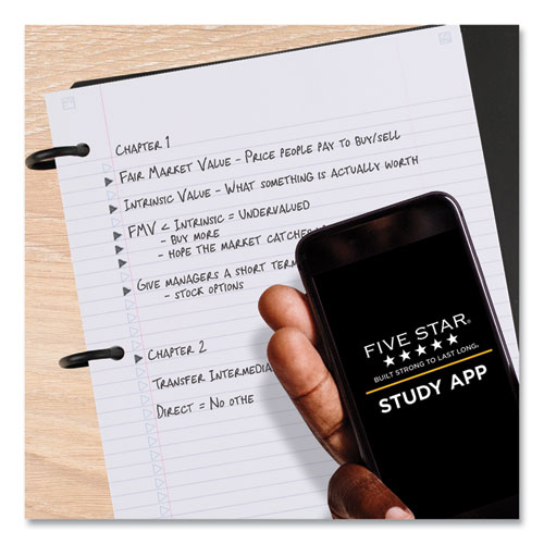 Get the organization you need with ultimate flexibility when you choose the Five Star Flex Refillable Notebook. The cover folds back and the three rings keep your papers securely in place. With strong plastic covers and TechLock rings, your pages stay safe. Lasts all year. Guaranteed! Use Five Star Filler Paper to scan, study and organize your notes with the Five Star App. Create instant flashcards and sync your notes to Google Drive to access them anywhere from any device. Reuse again and again! This refillable notebook lets you add, remove and rearrange papers in an instant. Comes prefilled. Patented TechLock rings won’t break or misalign. The large 1″ rings hold up to 200 sheets. Sheet count capacity is measured by using 15 lb. Filler Paper. Comes with two NotePocket dividers to store loose sheets and three NoteProtector dividers. Durable cover protects your contents from damage.