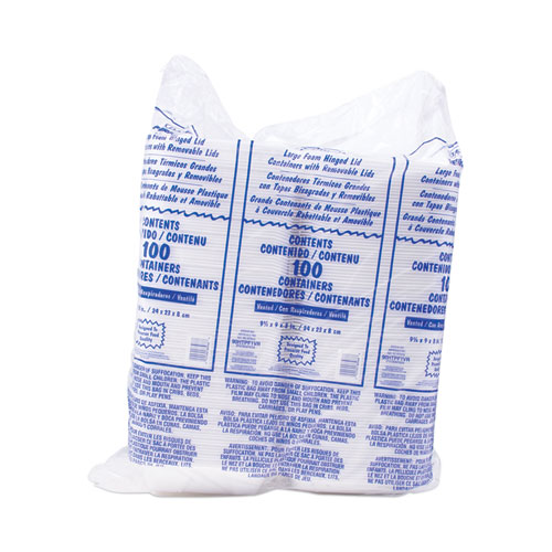 Foam Hinged Lid Container, Vented Lid, 9 X 9.4 X 3, White, 100-pack, 2 Packs-carton