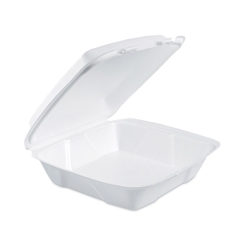 Foam Hinged Lid Containers, 9.01 X 9.4 X 3.1, White, 200-carton