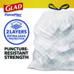 Fight nasty kitchen odors with Glad® trash bags. Glad® Kitchen Drawstring Trash Bags are designed with ForceFlex technology to give extra flex as it expands around sharp edges and heavy loads, so you can pack it in while resisting tears, rips and punctures. Keeps your kitchen smelling pleasantly fresh with long lasting odor control. Let the stretchable strength of Glad® handle all the messes our busy daily life can throw at it and then some. With double-sided seals and a reinforced bottom, these bags are designed with RipGuard® and LeakGuard® technology to prevent seepage of liquids and keep trash contained. The durable Grips-The-Can Drawstring ensures a tight grip on the trash can to keep it in place. Take the trash to the curb with no fear of leaks and tears, and no frustration. Keep your kitchen smelling clean with the stretchable strength of Glad®. Ideal for use in offices, schools, daycare centers, restaurants, hotels and other commercial facilities.