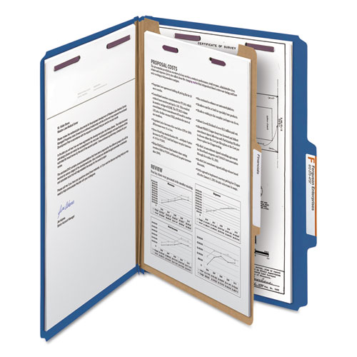 Four-section Pressboard Top Tab Classification Folders, Four Safeshield Fasteners, 1 Divider, Legal Size, Dark Blue, 10-box