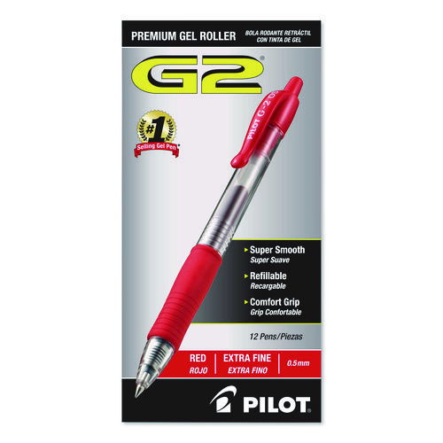 G2 Premium Gel Pen, Retractable, Extra-fine 0.5 Mm, Red Ink, Smoke-red Barrel, Dozen