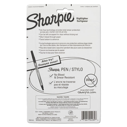Sharpie Gel Highlighters feature ink-free gel technology for total smear protection across pen and marker inks and inkjet printouts. The gel highlighter won’t dry out if left uncapped or bleed through paper, even glossy and thin papers and magazines. Each highlighter conforms to your handwriting style and features a vibrant color for emphasizing key points in your notes and reading material.
