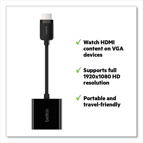 HDMI to VGA Adapter with Micro-USB Power allows you to enjoy content from your laptop, smartphone or tablet on a VGA-enabled projector or screen. With a variety of configurations this adapter is perfect for work presentations, classroom lessons, and personal entertainment. Compact design for portability so you can easily take it along while traveling.
