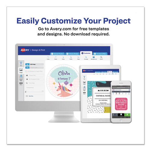 Have something important to say? Customize your white labels with attention-getting images or make your most important messages stand out with high-visibility color labels. Ideal for announcements, priority messages, addressing, color-coding, identification/warning labels and more! Easy to customize with free templates from Avery® Design & Print. For laser printers. Now you’ve got their attention.