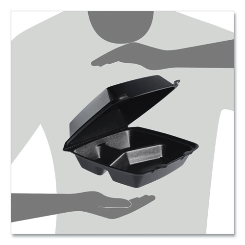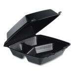 Insulated Foam Hinged Lid Containers, 3 Compartments, 7.96 X 3.2 X 8.36, Black, 200-carton