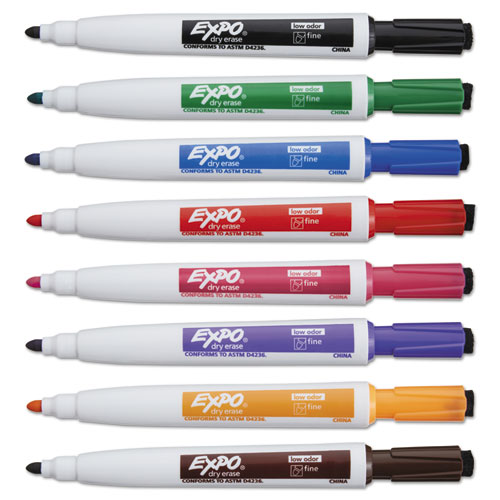 Lock your whiteboard markers to any metal surface with magnetic dry erase markers. An integrated magnet provides convenient and care-free storage on metal-backed white boards and other metal surfaces. What’s more, the cap features a handy eraser for precise, on-the-fly erasing. Quick-drying, low-odor ink is perfect for both the office and classroom.