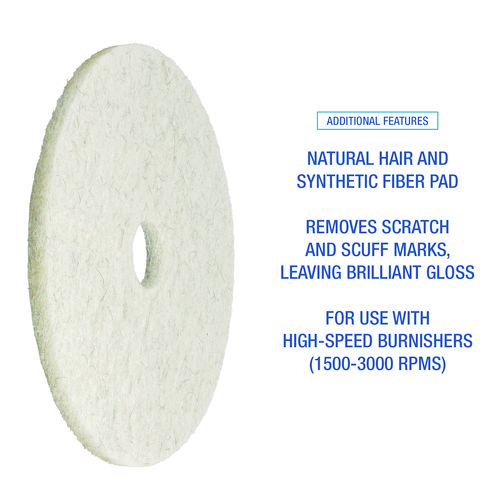 Take your floors to the next level with a natural and synthetic fiber, burnishing floor pad that removes unsightly scratches and scuff marks from floors. Add a brilliant, glossy shine to floors that welcomes customers and gives the right impression from the start. Value pad constructed from durable fibers that require less replacement. For use with ultra, high-speed burnishers (1,500 to 3,000 RPM).