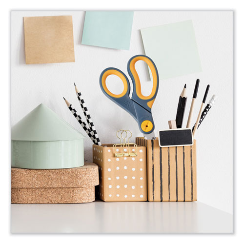 Westcott Titanium Bonded Non-Stick blades are six times longer lasting than the previous formula. Westcott uses a process that bonds Titanium Bonded to the blades and then coats them with a breakthrough non-stick formula to produce an adhesive-resistant, easy-to-clean, and longer-lasting cutting edge. Glide provides a no tool adjustable glide technology for optimal cutting performance which allows less tension for thin materials and higher tension for thicker material. These scissors will stay sharp, smooth-cutting and residue-free for years making them an exceptional value like all Westcott products.