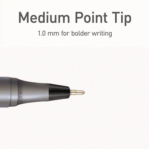 Each PENTONIC pen has a sleek charcoal gray finish for a comfortable grip and smooth, effortless writing and journaling. The nickel silver pen tip is 1.0 mm medium point for thicker lines. The low viscosity ink allows the rolling ball to glide across all kinds of paper surfaces without smearing. You get a consistent flow of ink from the very first use to the very last. The pen cap also helps to maintain the lifespan of your ballpoint pens!