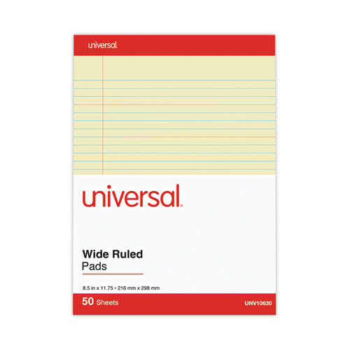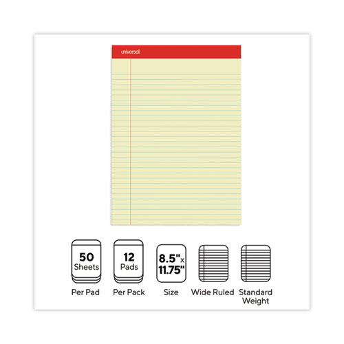 Perforated Ruled Writing Pads, Wide-legal Rule, Red Headband, 50 Canary-yellow 8.5 X 11.75 Sheets, Dozen