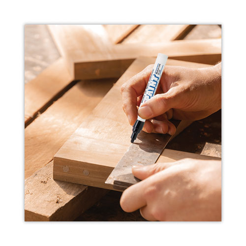 Create permanent and accurate marks on virtually any surface with uni Paint oil-based paint markers from uni-ball. These markers deliver strong and clearly visible lines. Quick-drying paint is water, fade, heat and abrasion resistant. Valve action control provides excellent flow and coverage, while also preventing the marker from drying out if left uncapped. Permanent paint colors mark opaque and glossy on both light and dark surfaces, no matter what it is applied to. The metal barrel and durable tip ensures a long marking life. Ideal for manufacturing, construction sites, automotive, metal fabrication, aviation, marking oily, greasy items and identifying parts or equipment outside.