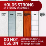 These picture hanging strips make decorating quick and easy. One click tells you when these strips are locked in and hold tight. Best of all, when you are ready to take down or move your pictures, they come off leaving no wall damage, cracked plaster or sticky residue. They work on a variety of surfaces including paint, wood, tile and more.