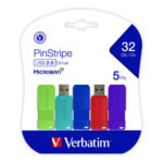 Pinstripe Usb 3.2 Flash Drive, 32 Gb, Assorted Colors, 5-pack