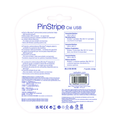 Features a retractable connector with a push-and-pull sliding feature to protect the USB connector when not in use, eliminating the need for a cap. It features a lightweight, pinstriped design. The PinStripe drive makes transporting and sharing files simple.