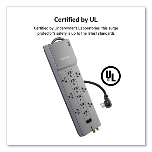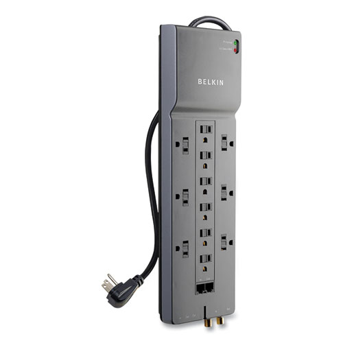 Professional Series Surgemaster Surge Protector, 12 Ac Outlets, 10 Ft Cord, 3,996 J, Dark Gray