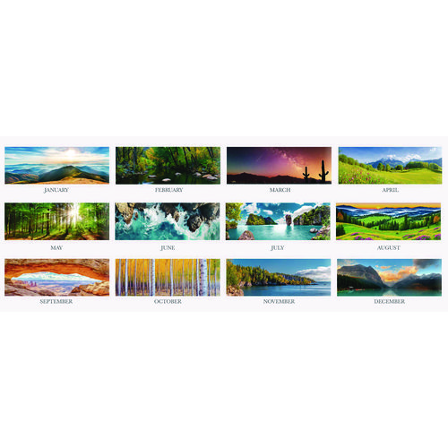 This calendar’s images have a dream-like quality that provides a soothing touch to your busy days. Each month’s page contains a distinctive, scenic full color image. The pages are held together with four reinforced, black leatherette corners for extreme durability throughout the year. Includes a full, 12-month reference calendar for long-term planning. Features numbered weeks. Made entirely of recycled materials.