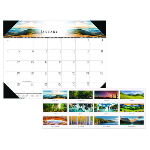 Recycled Two-color Monthly Desk Pad Calendar, 18.5 X 13, Perforated White-blue-gray Sheets, 12-month (jan-dec): 2025