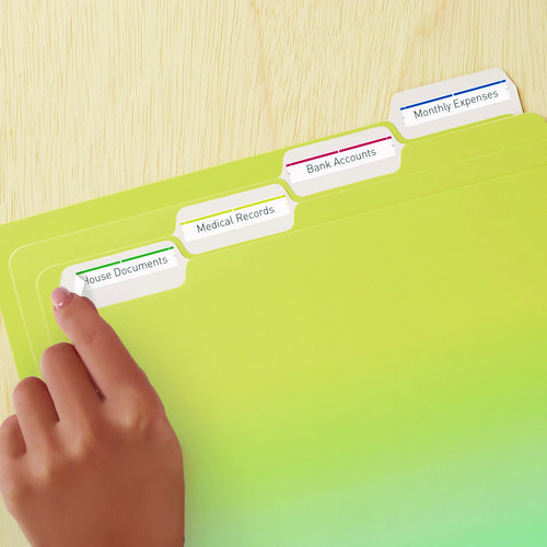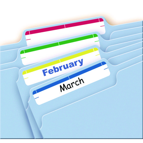 Make quick changes and reuse your file folders with our removable file folder labels. The removable adhesive helps labels stick, stay and remove cleanly when you need a change. Labels feature an eye-catching color strip at the top to make it easier to find just the folder you’re looking for. The assorted colors make them great for color coding too. Write by hand or use our free templates from Avery® Design & Print to customize and print your labels for a professional look. For a truly versatile label, it’s hard to beat these file folder labels.