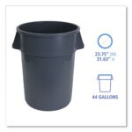 Round Waste Receptacle, 44 Gal, Plastic, Gray