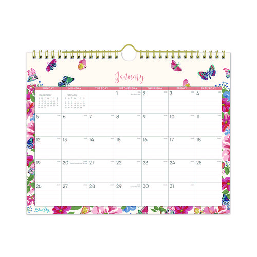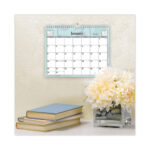 Use this slim wall calendar as a writing surface to jot down notes, ideas, appointments, reminders and more. Dated planning pages range 12 months from January to December. One page per month format includes daily blocks, Sunday through Saturday scheduling, count of days/days remaining, holidays and past and future months reference. Wirebound wall calendar is printed on thick, premium quality acid-free paper that reduces ink bleed-through. Twin-wire binding features a sturdy, wall mount hook for secure hanging. Printed with soy-based ink.