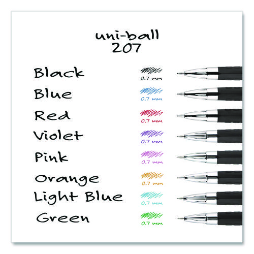 Stock your office, home or classroom with 207 Retractable Gel Pens from uni-ball available in various point sizes with a stainless steel tip that resists bending and breaking. Even-flowing, pigment-based gel ink delivers a smooth writing experience for intense, vibrant lines, ensuring that every mark is brilliantly communicated. Use these retractable gel pens for everyday writing tasks, check signing and all of your important signatures, trusting its quick-drying uni Super Ink. Innovative uni Super Ink technology effectively entraps the gel ink into the paper, producing fraud, fade and water-resistant documents that resist check washing or bleaching. A textured grip offers greater comfort and control as you continue writing, while a translucent ink window indicates the level of gel ink remaining, so you don’t run out unexpectedly. The sleek design of the 207 with modern metal accents gives the retractable gel pen a stylish touch.