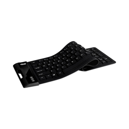 Designed for outdoor or mobile settings, this hyper-flexible keyboard is easily packed away, cleaned with soap and water, and accessible whenever you need it. The keyboard is made with antimicrobial material that protects against germ buildups between washings. The keyboard has a USB interface that easily connects without having to install specific drivers. In addition to these practical features, the keyboard is made for smooth and quiet performance.
