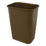 The wastebasket has a seamless soft-sided construction that prevents it from denting, leaking, or rusting, making the basket perfect for nearly any environment. Molded of a high-quality polyethylene for strength and durability. The rolled rim design is for easy pickup and delivery.