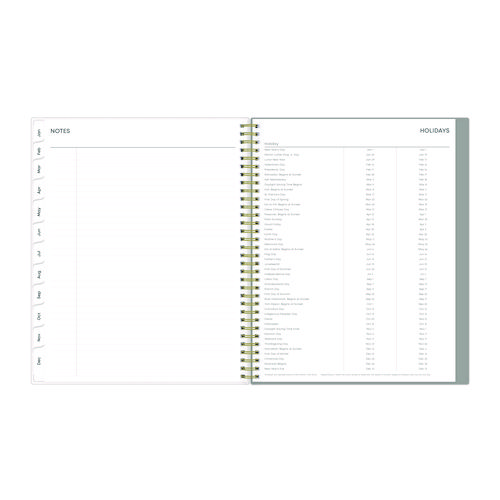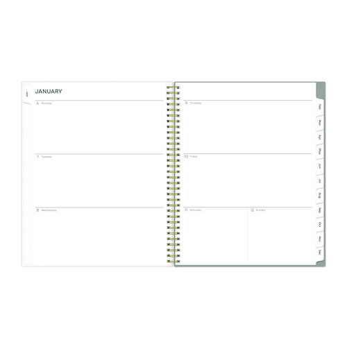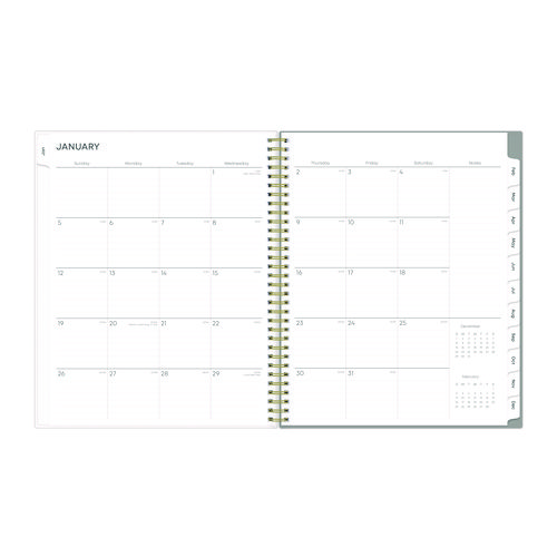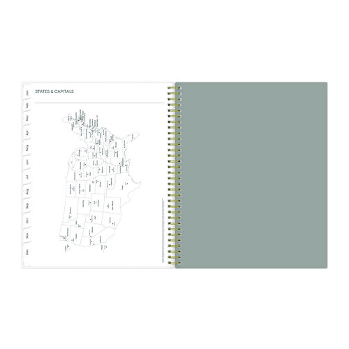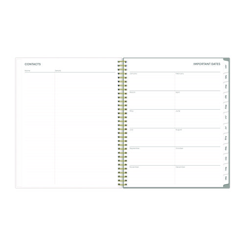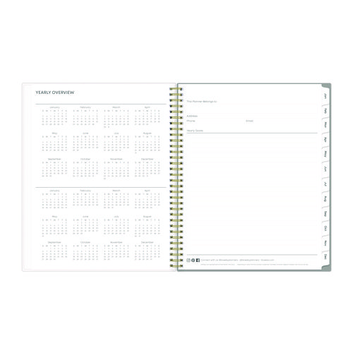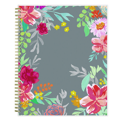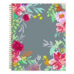Give your schedule a fresh start and bring order to your busy life with the lovely Sophie Planner and its bright floral motif on a neutral gray background. Two-page-per-week spread features lined daily blocks with ample space for planning. Monthly view per two-page spread includes a Notes section for important projects. Monthly tabs are coated for durability. Durable, frosted flexible front cover. Twin-wire binding offers easy page turning. Includes pages for Yearly Goals, Contacts, Reference Calendars, and extra Notes pages. Thick, premium quality pages reduce ink bleed-through. Includes six bonus past monthly views for easy yearly transition.
