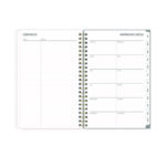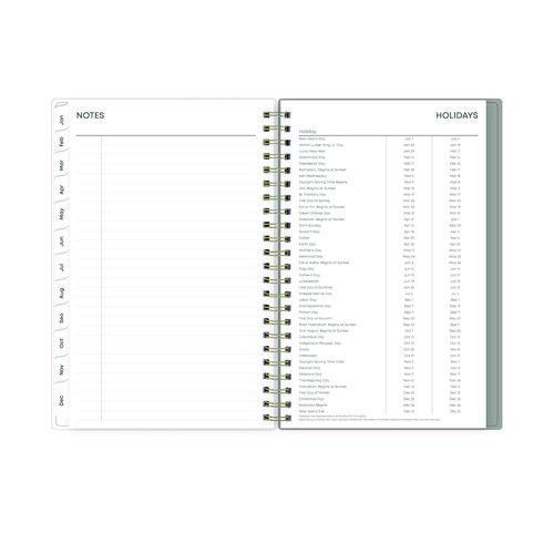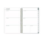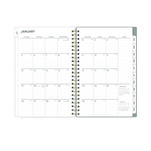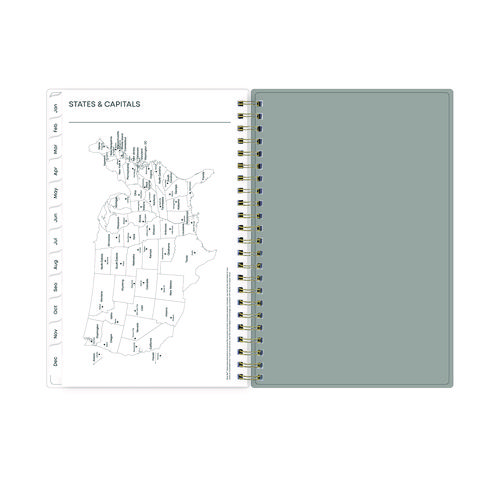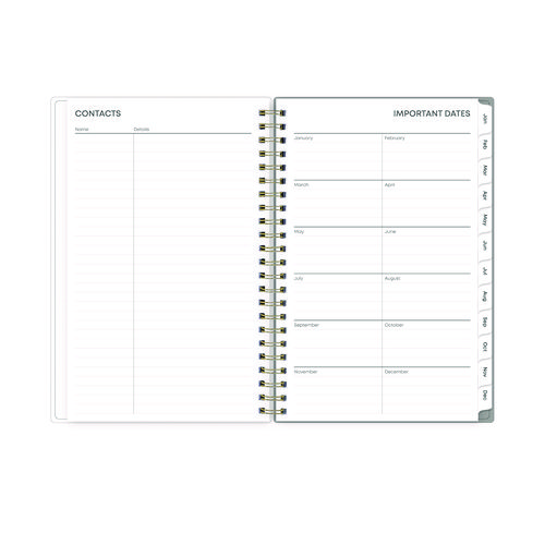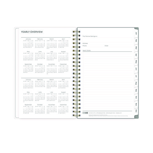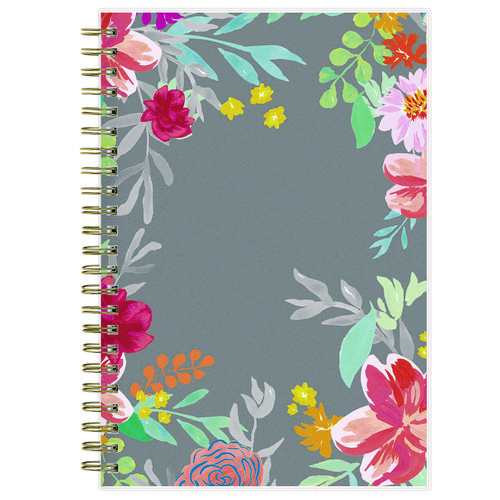 Give your schedule a fresh start and bring order to your busy life with the lovely Sophie Planner and its bright floral motif on a neutral gray background. Two-page-per-week spread features lined daily blocks with ample space for planning. Monthly view per two-page spread includes a Notes section for important projects. Monthly tabs are coated for durability. Durable, frosted flexible front cover. Twin-wire binding offers easy page turning. Includes pages for Yearly Goals, Contacts, Reference Calendars, and extra Notes pages. Thick, premium quality pages reduce ink bleed-through. Includes six bonus past monthly views for easy yearly transition.